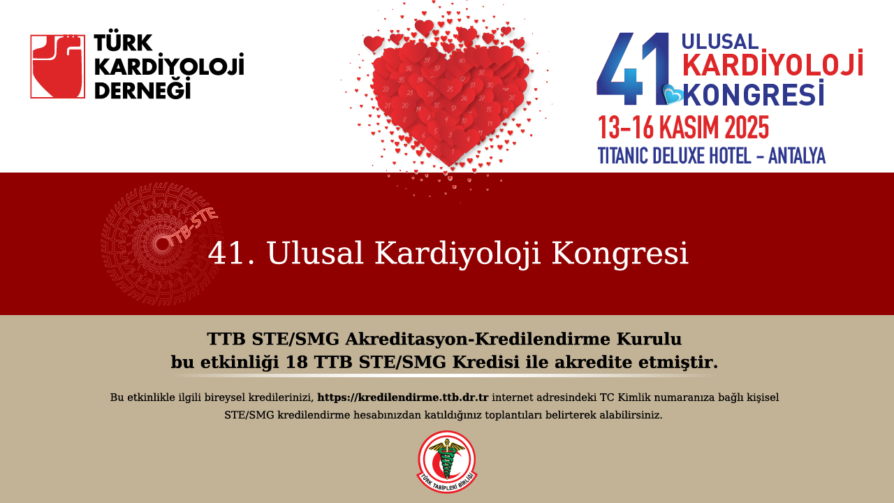 13-16 Kasım 2025’te 41. Ulusal Türk Kardiyoloji Kongremizde buluşmak, bilgilerimizi paylaşmak dileği ve saygılarımızla.