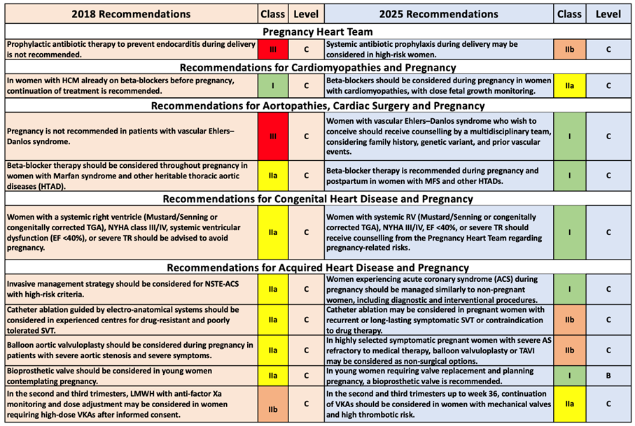 Since the 2018 guideline, new evidence has emerged and clinical priorities have shifted, requiring an updated approach. Cardiovascular disease (CVD) remains a leading cause of maternal mortality and morbidity, and the new guideline aims to provide up-to-date, evidence-based recommendations to improve maternal outcomes—one of the WHO’s global health priorities. The 2025 version brings not only updated recommendations but also structural changes. The Pregnancy Heart Team is now a more formalized and central component, with the mWHO 2.0 classification guiding management, particularly in classes II–III and IV. Shared decision-making, psychosocial support, and patient autonomy are strongly emphasized, while heart failure management includes more specific parameters for monitoring and treatment.