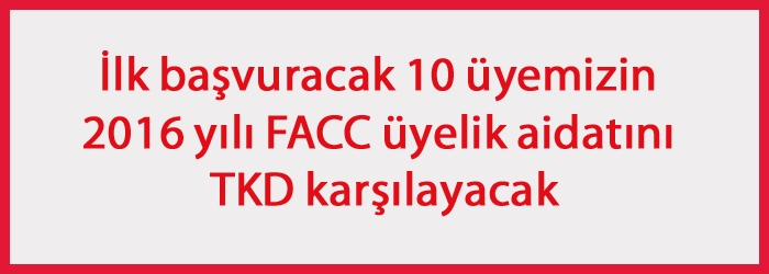İlk başvuracak 10 üyemizin 2016 yılı FACC üyelik aidatını TKD karşılayacak.