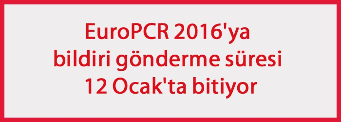 17-20 Mayıs 2016'da Paris’te gerçekleştirilecek EuroPCR 2016 Kongresi’ne bildiri, olgu ve görüntü gönderme süresi 12 Ocak’ta doluyor. Late-Breaking Trials için son gönderim tarihiyse 29 Ocak.