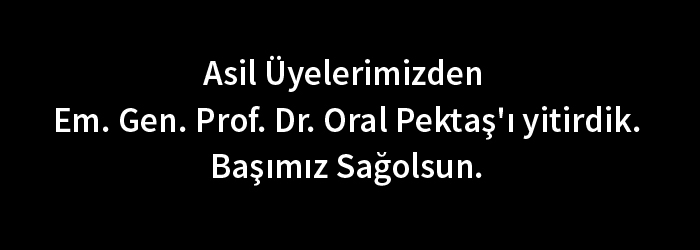 Asil Üyelerimizden Em. Gen. Prof. Dr. Oral Pektaş'ı yitirdik. Cenazesi 16 Kasım sabahı GATA'daki tören ardından öğleyin Ankara Kocatepe Camii'nden kalkacak.