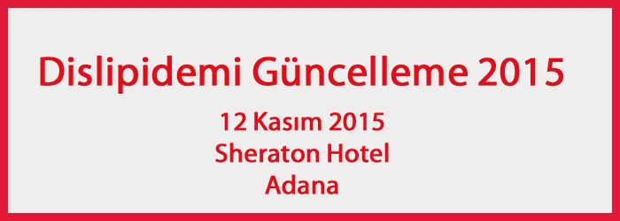 Lipit Çalışma Grubumuzun yıl boyunca değişik kentlerimizde düzenleyeceği Dislipidemi Güncelleme – 2015 başlıklı Lipit Kurslarından bir yenisi Sheraton Hotel, Adana’da, 12 Kasım 2015 günü saat 18.00 – 20.00 arasında gerçekleştirilecektir.