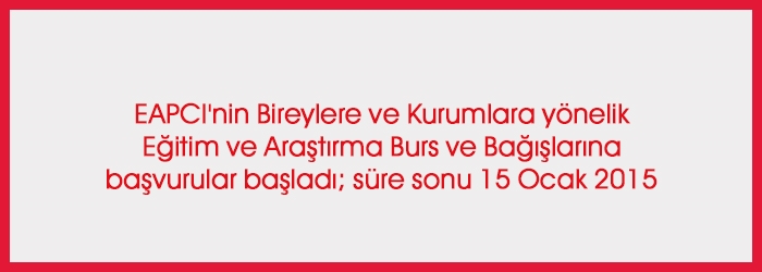 EAPCI'nin Bireylere ve Kurumlara yönelik Eğitim ve Araştırma Burs ve Bağışlarına başvurular başladı; süre sonu 15 Ocak 2015
