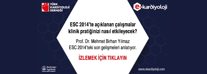 E-kardiyoloji.com web sitesine giriş yaptıktan sonra, Prof. Dr. Mehmet Birhan Yılmaz'ın ESC 2014'teki son gelişmeleri anlattığı canlı yayın programını aşağıdaki linkten izleyebilirsiniz.