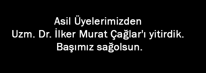 Asil Üyelerimizden Uzm. Dr. İlker Murat Çağlar'ı yitirdik. Cenazesi 30 Ekim Cuma Öğleyin Fatih Camii'nden kalkacak.