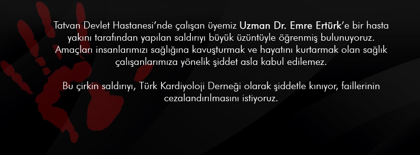 Bu çirkin saldırıyı, Türk Kardiyoloji Derneği olarak şiddetle kınıyor, faillerinin cezalandırılmasını istiyoruz.