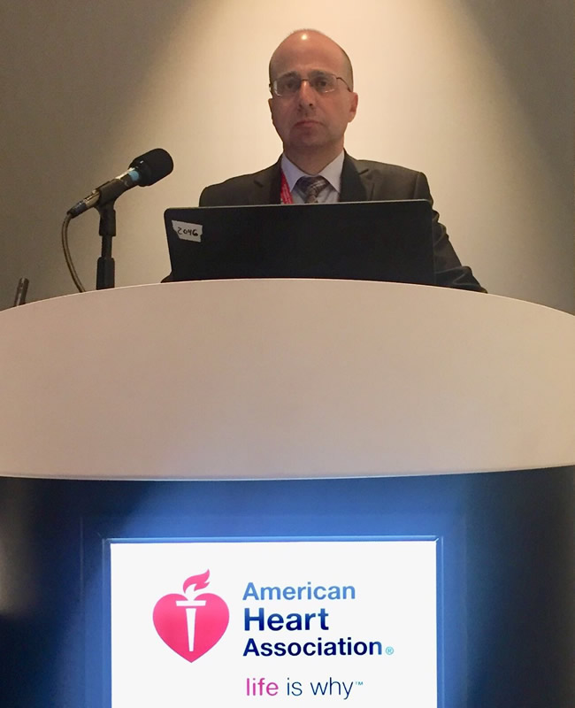 AHA kongresinde bu yıl ülkemizden 5 poster bildiri sunuldu. Üyelerimizden Dr. A. Demirkıran ‘Effects of Aldosterone Hormone on Endothelial Function With Carotid Intima-media Thickness Among Resistant and Early Onset Hypertension Patients’, Dr M. Kayıkçıoğlu, ‘Very Low Rates of LDL Goal Attainment in Real Clinical Setting: Interim Results of a Nation-wide Registry of Familial Hypercholesterolemia in Turkey (A-HIT 2)’, Dr. D. Koçyiğit, ‘Vitamin D Replacement Ameliorates Serum Lipoprotein Functions, Adipokine Profile and Subclinical Atherosclerosis in Pre-menopausal Women’, ve Dr M. Meriç ‘Echocardiographic assesment of pulmonary arterial Stiffness in Human Immunodeficiency virüs infected patients’ başlıklı çalışmalarını poster olarak sundu. Ayrıca, Dr. Vijaya Juturu, ‘Salacia Chinensis and Metabolic Risk Factors: in vivo Model’ posterini Fırat Üniversitesi ile ortak çalışma olarak ve Dr. BA Steinberg, ‘Utility of a wristband device as a portable screening tool for obstructive Sleep Apnea’ başlıklı bildiriyi Yıldırım Beyazıt Üniversitesi ile ortak çalışması olarak “ Rapid fire oral abstract” kategorisinde sundu.