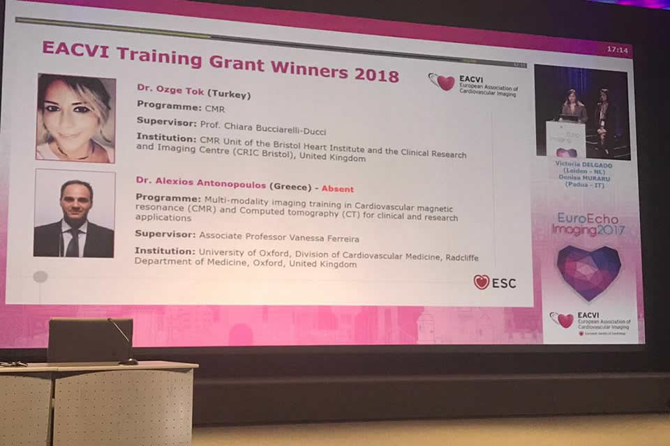 Genç kardiyologlarımızın başarılarına bir yenisi daha eklendi. Türk Kardiyoloji Derneği Genç Kardiyologlar üyesi ve "EACVI HIT Türkiye Kardiyovasküler Görüntüleme Temsilcisi" Dr. Özge Özden Tok, geçtiğimiz hafta Lizbon’da düzenlenen EuroEcho 2017 Kongresi sırasında EACVI Education Grant’e (İngiltere’de 6 ay süre ile kardiyak MR eğitim bursu) layık görülerek hepimizi gururlandırdı.