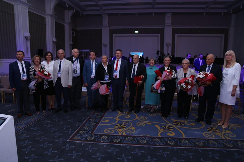 Bu yıl açılış töreninde ilk kez TKD’nin en yaşlı üyelerine, derneğimizin vefasını gösteren şükran plaketleri takdim edildi. Ödüllerini almak üzere davet edilen emektar üyelerimizden kongreye katılabilenler Prof. Dr. Ali Ekmekçi, Prof. Dr. Jale Cordan, Prof. Dr. Gültaç Özbay, Prof. Dr. İstemi Nalbantgil, Prof. Dr. Bilgin Timuralp, Prof. Dr. Önal Özsaruhan ve Dr. Tanju Özsaruhan’a ödülleri TKD Yönetim Kurulu eski Başkanları Prof. Dr. Çetin Erol, Prof. Dr. Lale Tokgözoğlu, TKD yönetim kurulu Başkanı Prof. Dr. Mahmut Şahin ve Gelecek Başkan Prof. Dr. Mustafa Kemal Erol tarafından takdim edildi. Kıdemli hocalarımız yıllar sonra Türk Kardiyoloji Camiası ile tekrar bir arada olmaktan duydukları memnuniyeti dile getirdiler. Oldukça duygusal konuşmaların yapıldığı tören Sağlık Bilimleri Üniversitesi Rektörü Prof. Dr Cevdet Erdöl’ün ‘Türkiye’nin Tütünle Mücadelesi’ başlıklı konuşmasıyla son erdi.