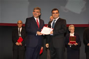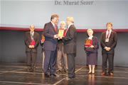 Cumhurbaşkanı Gül, S. Gündüz'e "Prof. Dr. Remzi Özcan Genç Araştırmacı Teşvik Ödülü"nü verirken |  TKD Başkanı Çetin Erol, Cumhurbaşkanı Abdullah Gül'e plaket verirken. |  Prof. Dr. Lale Tokgözoğlu, En Başarılı Bildiri Ödülü'nü M. Biteker'e verirken |
