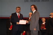 Saygı Duruşu |  Cumhurbaşkanı Gül, Prof. Dr. Faruk Erzengin |  Cumhurbaşkanı Gül, M. Sezer'e "Prof. Dr. Muzaffer Esat Güçhan Genç Araştırmacı Teşvik Ödülü"nü verirken. |