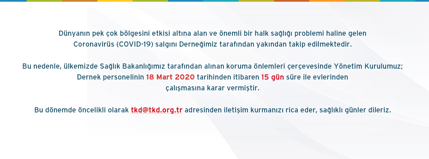 Yönetim Kurulumuz; Dernek personelinin 18 Mart 2020 tarihinden itibaren 15 gün süre ile evlerinden çalışmasına karar vermiştir.