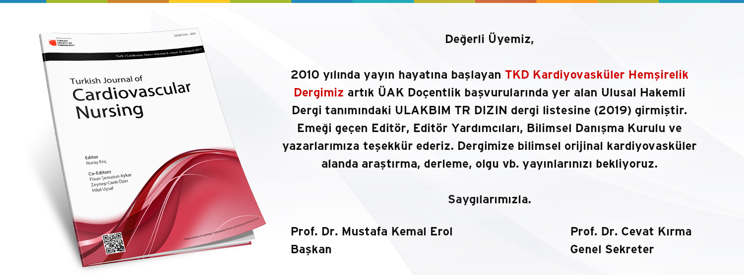 2010 yılında yayın hayatına başlayan TKD Kardiyovasküler Hemşirelik Dergimiz artık ÜAK Doçentlik başvurularında yer alan