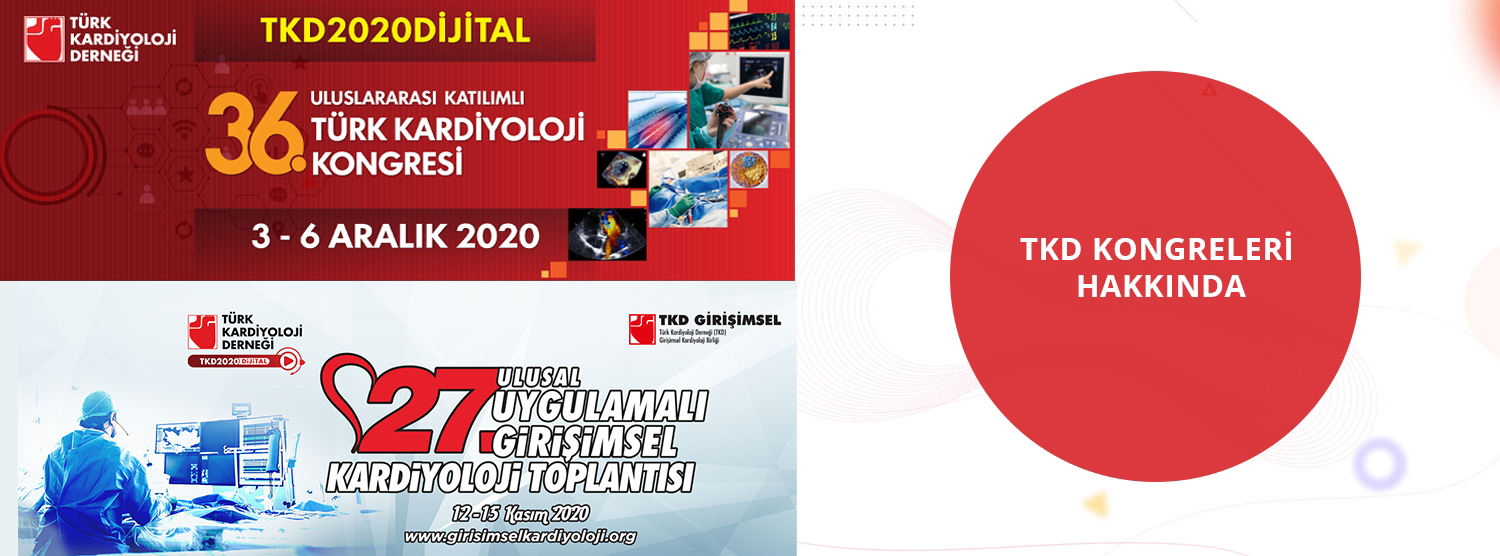 Diğer taraftan “TKD Girişimsel Kardiyoloji Birliği”miz tarafından düzenlenen “27. Ulusal Uygulamalı Girişimsel Kardiyoloji Toplantısı”nı da “12-15 Kasım 2020” tarihleri arasında aynı şekilde “Dijital Ortamda” düzenliyoruz. Dinamik canlı yayınlar, live in box sunumları ile zenginleştirilmiş olan toplantımıza sizleri bekliyoruz.