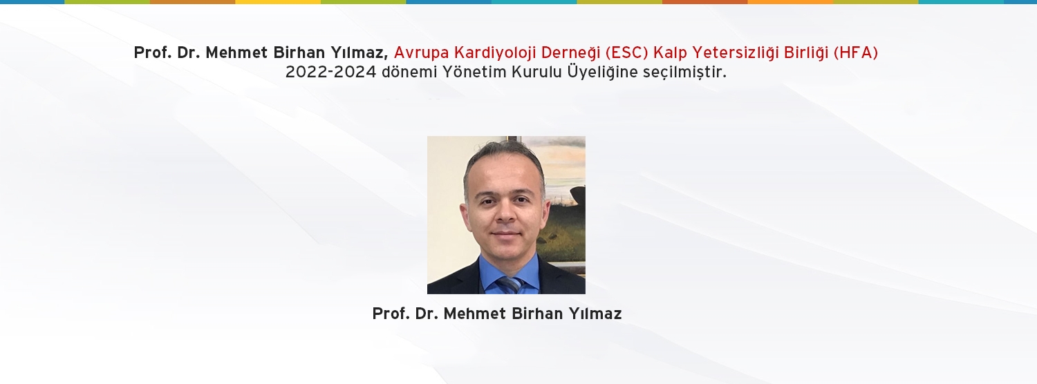 Prof. Dr. Mehmet Birhan Yılmaz, Avrupa Kardiyoloji Derneği (ESC) Kalp Yetersizliği Birliği (HFA) 2022-2024 dönemi Yönetim Kurulu Üyeliğine seçilmiştir.