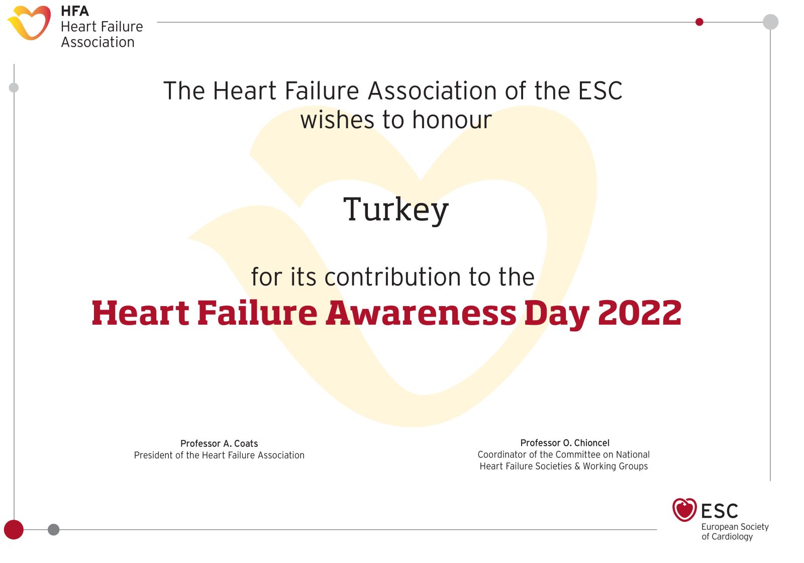 Türk Kardiyoloji Derneği Kalp Yetersizliği Çalışma Grubu HFA Tarafından Ödüllendirildi!