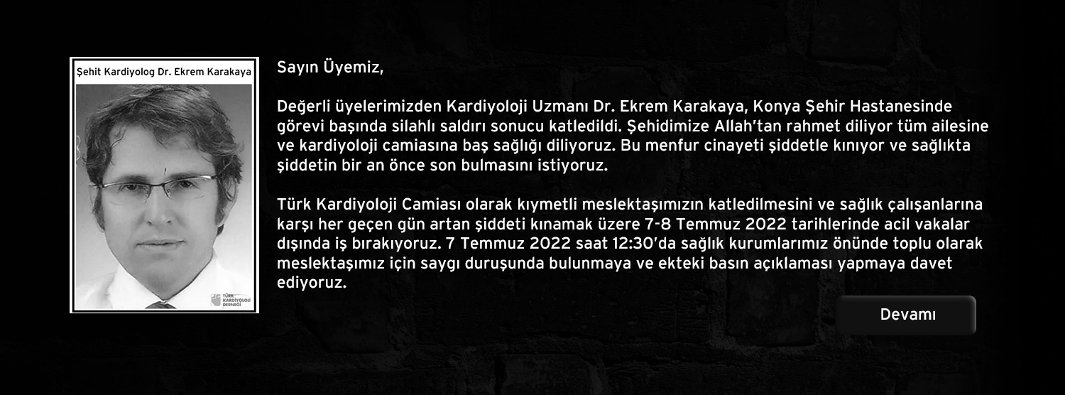 Bu tarz üzücü kayıpların ve olayların bir daha yaşanmaması için tüm süreçlerin takipçisi olacağımızı ve Türk Kardiyoloji Derneği olarak tüm üyelerimizin ve sağlık çalışanlarının haklı mücadelelerinde yanlarında olacağımızı belirtmek isteriz.