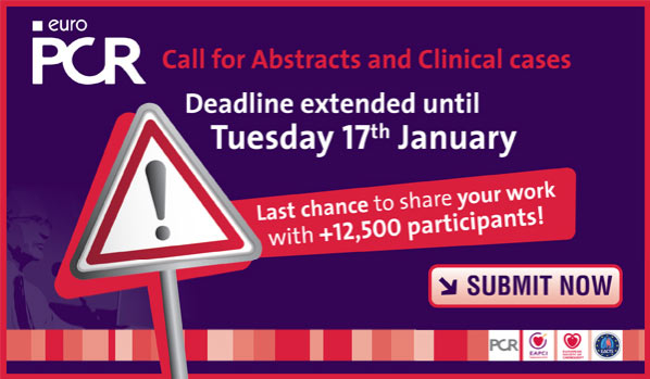 Bu yıl da 12.500 hekimin katılmasının beklendiği EuroPCR'a bildiri özeti göndermek için süre sonu 17 Ocak akşamına kadar uzatılmıştır.