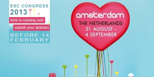 Bu yıl 31 Ağustos-4 Eylül’de Amsterdam’da düzenlenecek olan ESC Avrupa Kardiyoloji Kongresi 2013 için Bildiri Özeti gönderme süresi, Türkiye saati ile, 18 Şubat sabahı saat 11.00’e kadar uzatıldı.