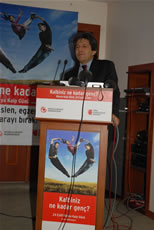 Basın toplantısında geçen yılın çalışmalarıyla ilgili sonuçlar hakkında soruları Önceki Başkan Prof. Dr. Ali Oto yanıtladı.